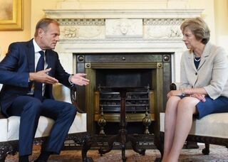 Hard to exit: British Prime Minister Theresa May speaks to President of the European Council Donald Tusk; British fishermen may find it hard to eliminate EU competition